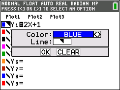 • Arrow to the left of "Y1 =", but this time you will get a box formed around the color, line, and Y1 =.